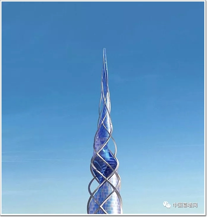 塔樓采用復雜多變的“DNA”螺旋狀結構,呈現(xiàn)“生命、科技與自然共生”的理念,建筑流線型的曲線,也減少了空氣阻力,最大程度地降低高度給建筑帶來的風險。